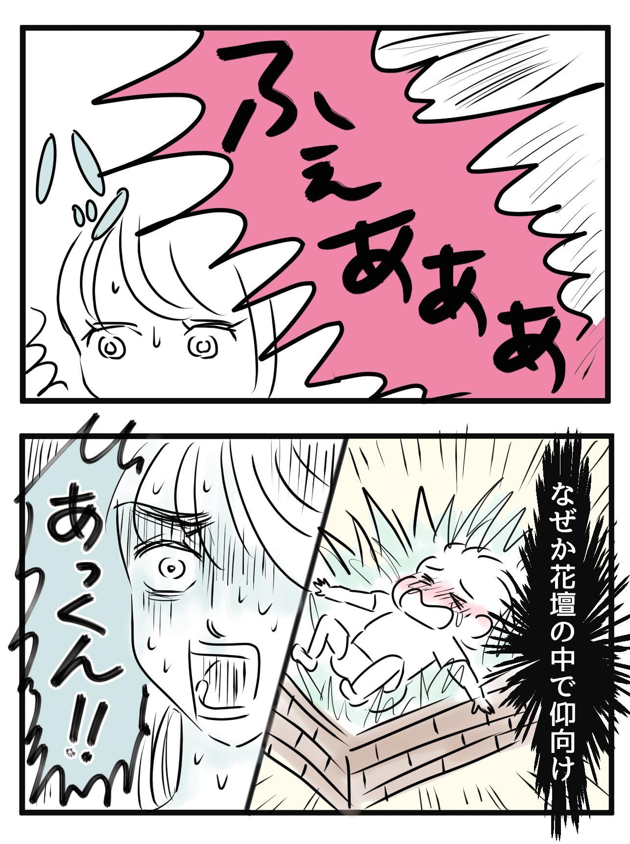 いつもと違う怒られ方をして、息子も心理的にどうかしてたみたいで、そりゃ、いつもからは想像できないようなことが巻き起こりますよね。(花壇に仰向けで倒れてるってどゆこと!?)