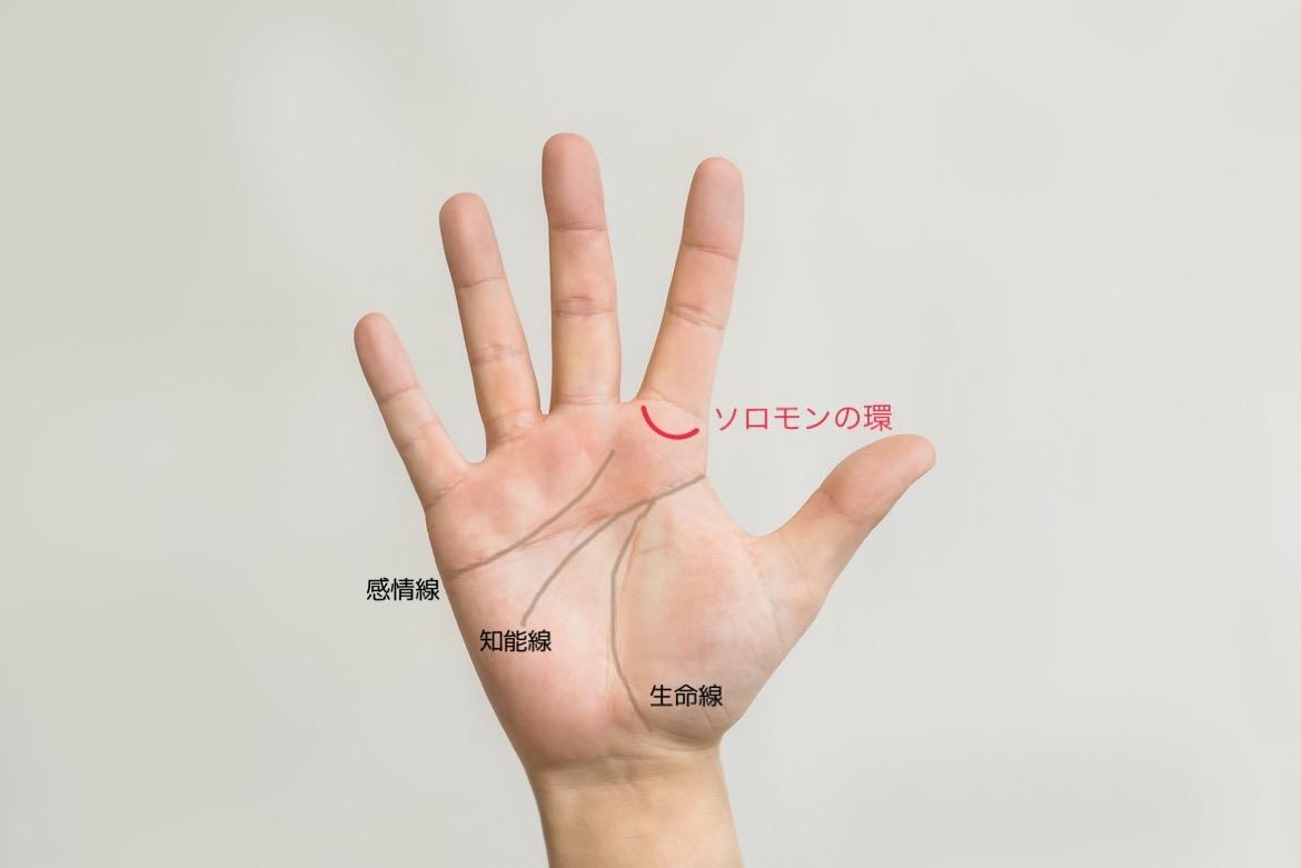 人差し指のつけ根の下に、半月型にあらわれる線を、ソロモンの環と呼びます。これがある人は、窮地にこそお金に好かれます。困難にぶつかりピンチに陥っても、自然と問題が解決される、お金の工面が解決される強運の持ち主です。普段から神社仏閣などのパワースポットに行っておくと良いですね。