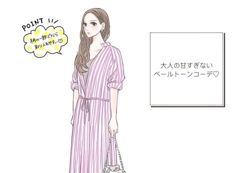 トレンドのストライプ柄で大人の甘すぎないペールトーンコーデ♡